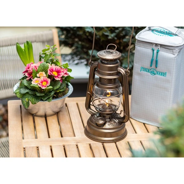 Mit der Feuerhand Transporttasche kann die Baby Special 276 einfach und sicher transportiert werden, denn das feste Ripstop-Gewebe (Stärke 600D) schützt die Sturmlaterne zuverlässig. Das zusätzliche Inlay verstärkt Boden, Deckel und Seitenwände der Tasche und damit ist ein sicherer Transport der Lampe im Auto, Wohnmobil oder aber auch in der Hand möglich. Die Reißverschlusstasche an der Deckelinnenseite bietet extra Raum für Ersatzdochte und Streichhölzer.Art.-Nr.: 1624981