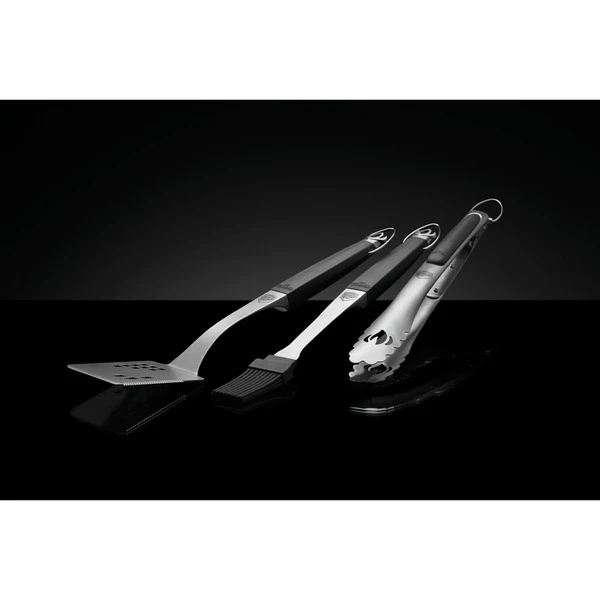 Das 3-teilige President’s Limited Edition Grillbesteck 70036 von Napoleon enthält Pfannenwender, Grillpinsel und Zange in hochwertigem Design, aus Edelstahl mit schwarzen Griffen. Der Grillpinsel ist mit Silikon-Borsten ausgestattet. Der Wender eignet sich ideal für Steaks und anderes größeres Grillgut. Er hat einen Wellenschliff und eine scharfe Kante. Die Grillzange mit dem praktischen Schließmechanismus ist ideal zum Hantieren mit feinem, zartem Grillgut. Alle drei Teile des President’s Limited Edition Grillbestecks haben einen großen Haken zum Aufhängen.Art.-Nr.: 1496494