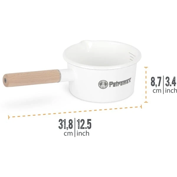 Mit dem weißen Petromax Emaille Stieltopf 1 Liter bekommt das Kochen nicht nur einen nostalgischen Charme, sondern geht auch noch leicht von der Hand. Bei Streifzügen durch die Natur oder beim Campen, das robuste Kochgeschirr aus Emaille ist durch geringes Eigengewicht ein idealer Begleiter. Der Holzstiel dient außerdem als ein natürlicher Hitzeschutz und ermöglicht auch das Hantieren über dem Feuer. Dank der Innenskalierung findet man auch unterwegs das richtige Maß für den Topf. Die Oberfläche ist kratzfest und lässt sich mühelos reinigen. Der Emaille Stieltopf erfüllt die Ansprüche an eine robuste, unkomplizierte Handhabung und Pflege in vollem Umfang. Der Petromax Emaille Stieltopf ist in zwei Farben und je zwei Größen erhältlich, für alle Herdarten und für offenes Feuer geeignet.Art.-Nr.: 1825495