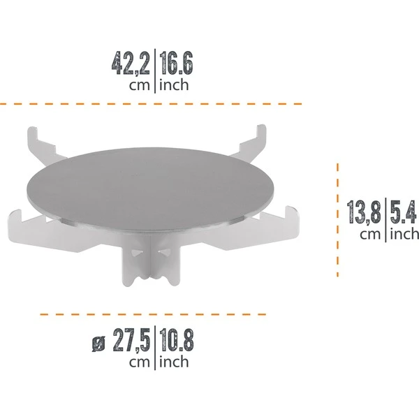 Mit der Grillplatte von Petromax erweitert man den Raketenofen um eine typisch spanische Plancha-Platte mit durchdachten Details. Die in Deutschland hergestellte Grillplatte aus 0,6mm dickem geöltem Stahl ermöglicht eine vielseitige Nutzung, saftige Fleisch-, Fisch- und Gemüsevariationen lassen sich auf der passgenauen Platte bruzzeln. Die sich bildende Patina sorgt für einen natürlichen Antihafteffekt, der von Mal zu Mal besser wird. Vor dem ersten Gebrauch sollte die Grillplatte dafür sorgfältig eingebrannt werden. Dank des Raketenofen-Kamineffekts heizt sie schnell auf, und das Kochkreuz fördert die Luftzirkulation für eine gleichmäßige Hitze. Feuertöpfe mit Füßen, Feuerpfannen, Perkolatoren und sogar die fs38 Feuerschale kann man ebenfalls einfach auf das Kochkreuz stellen, so sind den Kochabenteuern keine Grenzen gesetzt. Egal, ob herzhaftes Pfannengericht, Dutch Oven-Köstlichkeiten oder frisch gebrühter Kaffee im Perkolator, das flexible Kochkreuz erweitert die Möglichkeiten des Raketenofens. Durch die flache Ausführung und das steckbare Trägergestell kann sie leicht im Auto oder Van verstaut und als vielfältige Koch- und Grillstation für jeden Ausflug in Wald und Flur genutzt werden. Die Grillplatte ist ein problemloser Begleiter bei jedem Outdoor-Abenteuer.Art.-Nr.: 100013024