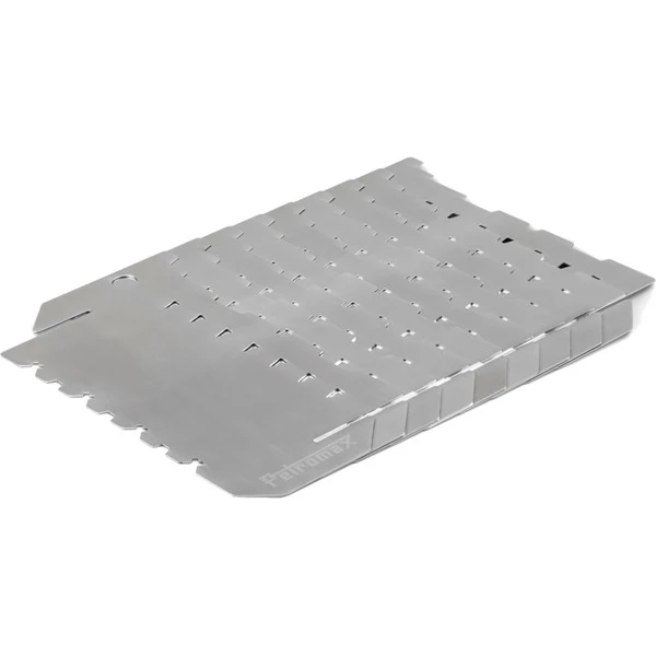 Der Windschutz mit Steckfunktion von Petromax ist ein praktischer und platzsparender, individuell zusammenfügbarer Windschutz aus neun Segmenten für die Feuerstelle, wo immer man gerade ist. Schnell und einfach lassen sich die neun Segmente alle oder nur teilweise miteinander verbinden. So kann man die Größe des Windschutzes selbst bestimmen, bis zu 60cm im Durchmesser. Die unteren und oberen Aussparungen ermöglichen das verrutschsichere Übereinanderstapeln. Außerdem kann man die Auskerbungen an der Oberseite als Auflagefläche für Grill- oder Schaschlik-Spieße nutzen. Fünf verbundene Windschutz-Elemente bieten z.B. die ideale Basis für den Atago Grillrost. Damit hat man eine flexible Feuer- und Grillstelle, die sich mit allen Petromax Pfannen, Kesseln, Perkolatoren und Sonderformen kombinieren lässt. Der Steck-Windschutz ist für alle Grill- und Feuerschalen geeignet, die unteren Auskerbungen sorgen für einen festen Sitz auf jeder Größe. Man kann sie ebenso auf alle Feuertopfdeckel von ft6 bis ft12 positionieren und mit geschützter Oberhitze kochen, da die Kohlen vom umlaufenden Luftzug abgeschirmt durchglühen können. Das flache Packmaß und die im Lieferumfang enthaltene Transporttasche machen das Mitnehmen ins nächste Abenteuer besonders einfach.Art.-Nr.: 1872482