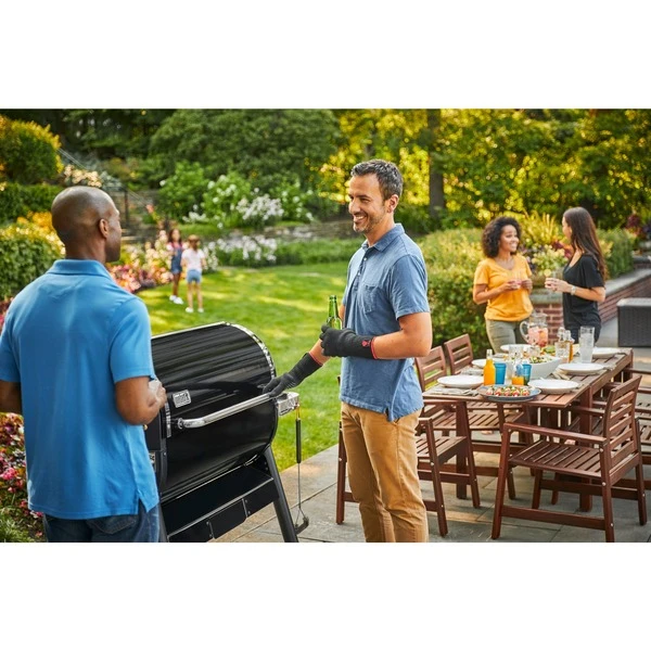 Der innovative Holzpellet-Grill SmokeFire EX6 GBS von Weber verbindet den authentischen Grillgeschmack von Holzkohle mit dem Komfort und der Benutzerfreundlichkeit von Gasgrills, ergänzt mit der Präzision und den High-Tech-Funktionen, die sonst nur ein Elektrogrill bietet. Mit dem SmokeFire kann man Steaks scharf anbraten, Briskets räuchern und Brot backen. Die Temperaturbandbreite von 95 – 315°C und die präzise Temperatursteuerung setzen neue Maßstäbe bei Geschmack, Zeit und Grillmöglichkeiten, und machen von Anbraten über Räuchern bis hin zu Backen alles möglich. Mit Weber Connect, dem digitalen Grillassistenten, war es noch nie so einfach das Grillgut genau auf den Punkt zu grillen. Das gut lesbare, witterungsbeständige LCD-Display zeigt die Schritt-für-Schritt-Grillanleitung von Weber Connect sowie Zeit-, Temperatur- und Steuerungsangaben an. Man kann bis zu vier Temperaturfühler anschließen, ein Kerntemperatur-Fühler ist bereits enthalten. Die bewährten Flavorizer Bars verteilen die Hitze gleichmäßig über den gesamten Grillrost, damit das komplette Grillgut von jeder Seite perfekt gegart wird. Und wenn man dem Grillgut noch etwas mehr von dem beliebten Holzfeueraroma verleihen möchte, braucht man nur den Smoke Boost einschalten, für noch authentischeren Grillgeschmack. Die einzigartige, geneigte Förderschnecke mit variabler Geschwindigkeit gewährleistet eine sichere Holzpelletzufuhr und vermeidet Pelletstaus. Der Trichterbehälter mit seinem großen Fassungsvermögen bietet Platz für einen ganzen 9-Kilo-Sack Holzpellets, damit kann man den ganzen Tag räuchern. Dank des durchdachten Reinigungssystems werden Asche und Fett für eine schnelle und einfache Reinigung anschließend getrennt voneinander in eine geschlossene, leicht herausnehmbare Auffangschale geleitet. Die porzellanemaillierte Oberfläche des SmokeFire EX6 GBS ist witterungsbeständig und sorgt für einen langfristigen Schutz vor Rost und Rissen.Art.-Nr.: 1602234